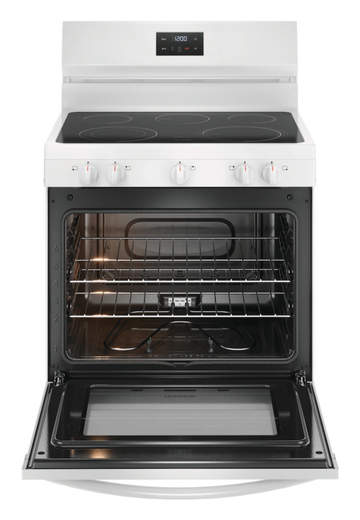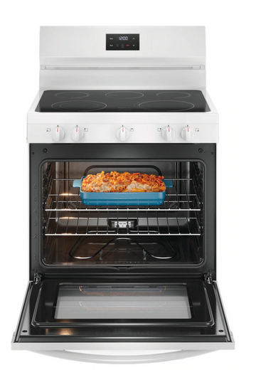 Estufa de gas Frigidaire 30″ con 5 quemadores sellados, quemador Quick Boil 18,000 BTU, horno de 5.1 cu ft con tecnología Even Baking®. Garantía, entrega rápida en Puerto Rico y financiamiento disponible.